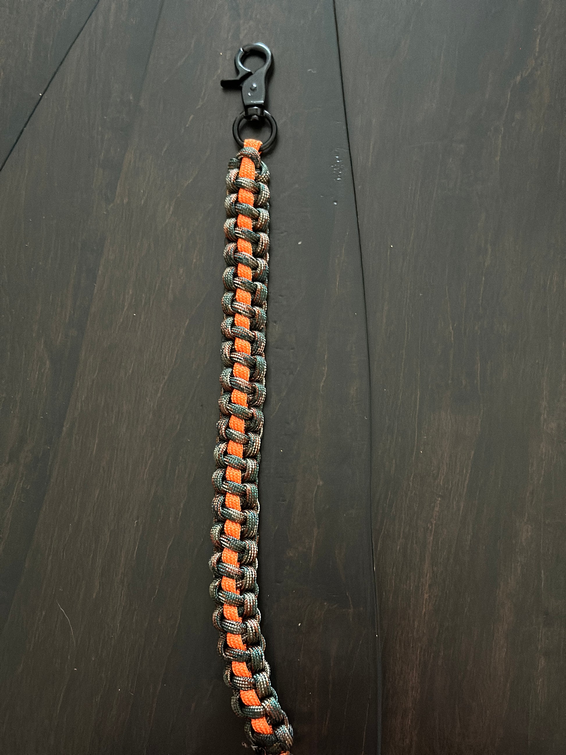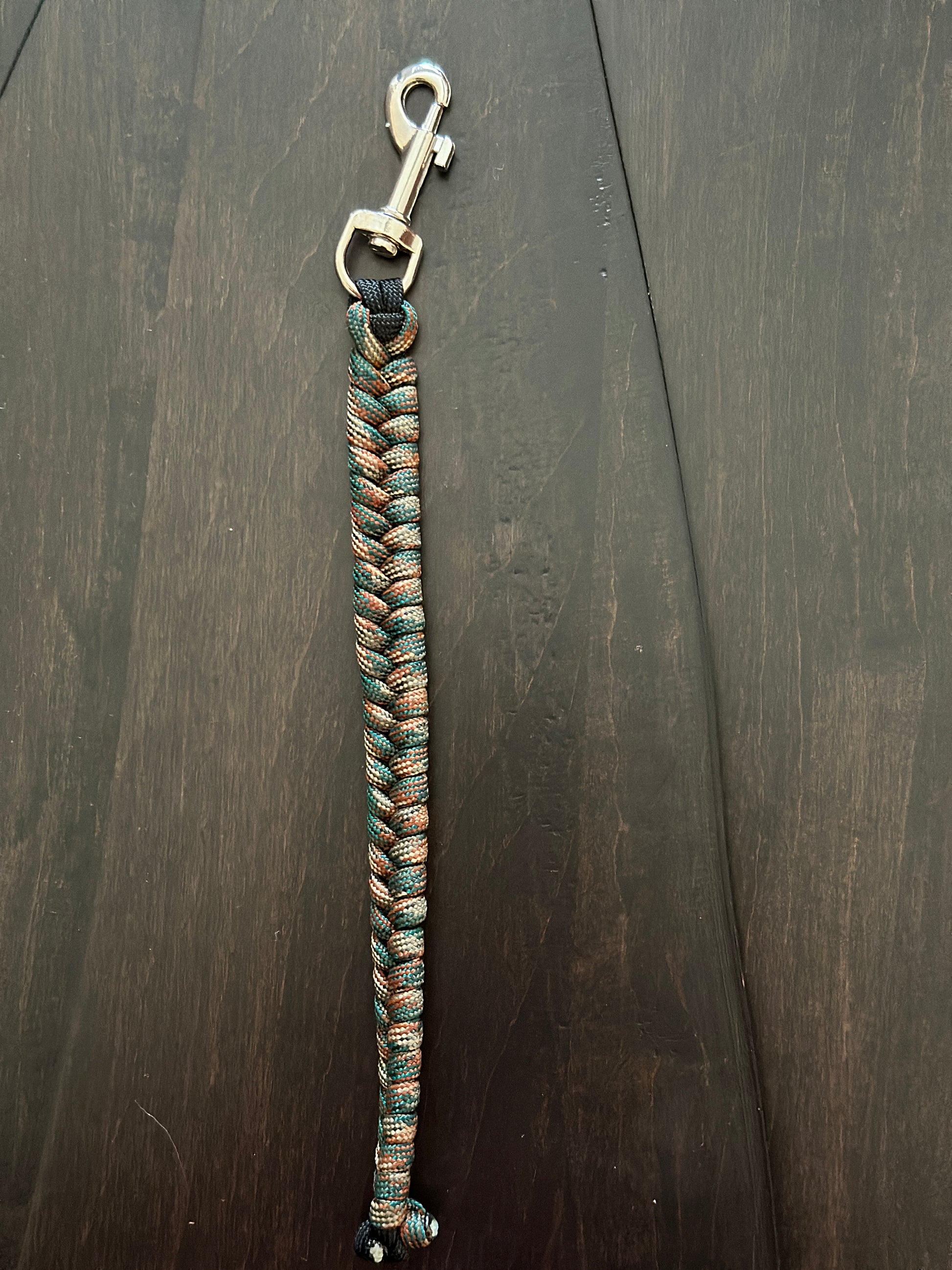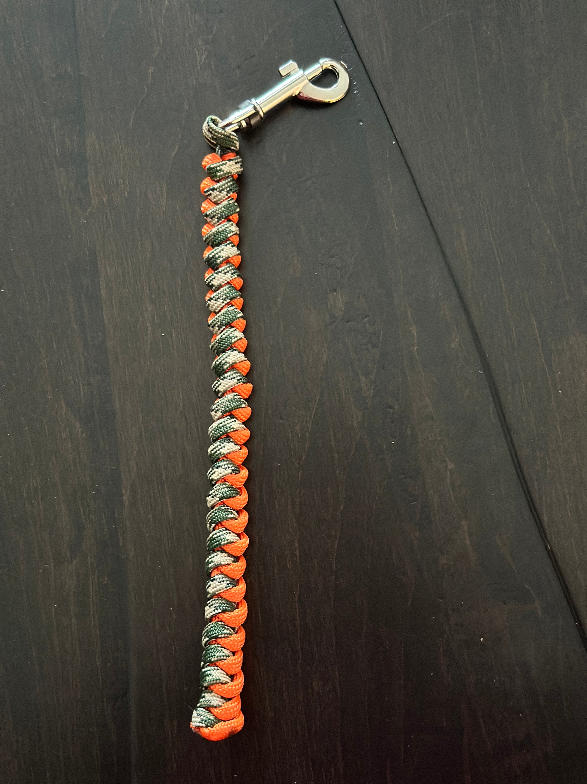 Beautiful Paracord dog training tabs. The training tabs are hand braided from 550 parachute cord. Approximate length is 10" (not including the metal clip).